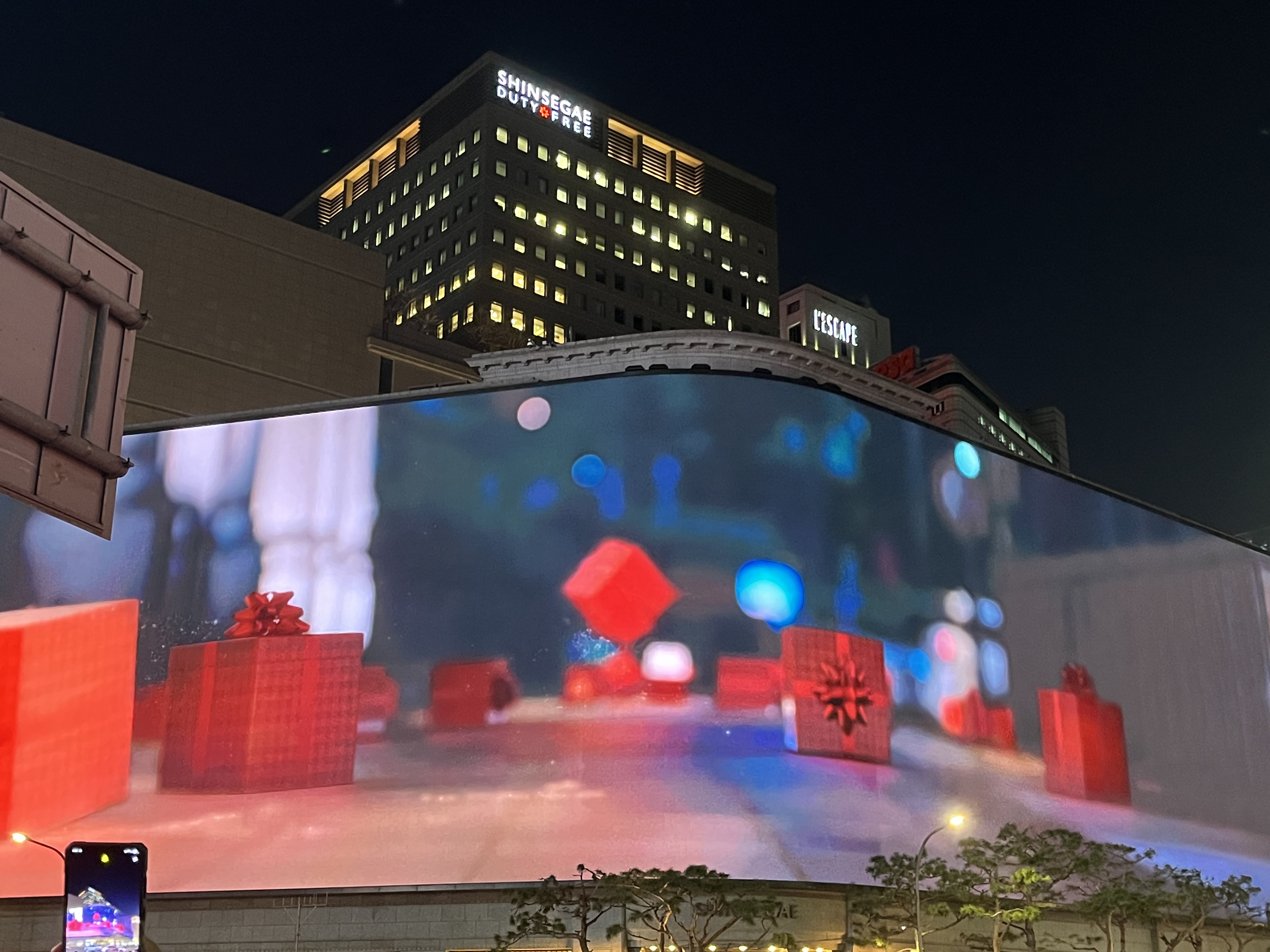 영상은 약 3분 정도의 비교적 짧은 길이지만, 그 순간만큼은 머릿속이 ‘연말’이라는 기억으로 꽉 찼다. 화려한 불빛이 어두운 도심을 밝히고, 음악과 영상이 어우러진 장면은 저절로 미소를 이끌어냈다. 특히 저녁 5시 이후부터 자정까지 상영된다는 점은, 퇴근길에 들러 잠시 감상하기에도 더없이 좋았다.